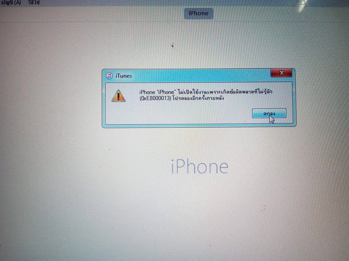 แล้วก็ลองมาต่อกับ itune แล้วก็ติดตรง 0xE8000013 (ตามรูป)