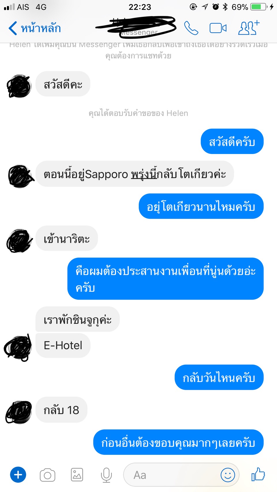 พอถึงไทย ตีหนึ่งกว่าๆ กลับถึงห้อง ก็มานอนตื่นมาสิ่งแรก ส่งไลน์ไปหาเพื่อนที่ญี่ปุ่น