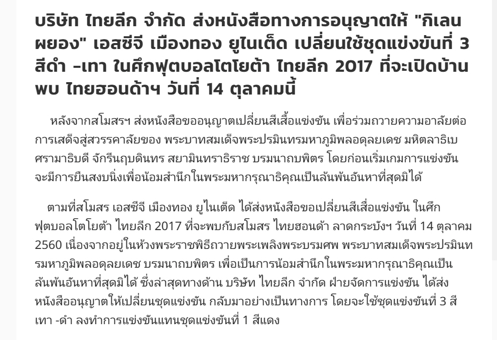 ........ไทยลีกยืนยันอนุญาตให้กิเลนใส่ชุดแข่งสีดำร่วมถวายความอาลัย........