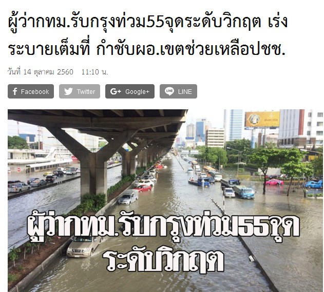 ผู้ว่ากทม.รับกรุงท่วม55จุดระดับวิกฤต เร่งระบายเต็มที่ กำชับผอ.เขตช่วยเหลือปชช.