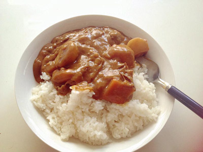 พอสักพักคุณแฟนก็เอาข้าวมาเสริฟ เป็นข้าวราดแกงกะหรี่เนื้อ ดูเหมือนจะตักให้เราเยอะไปนิดนึง กลัวเราไม่อิ่มหรืออย่างไร? แต่...อ้าาาา~~! กลิ่นหอมจุง นั่งดมกลิ่นอาหารอยู่พักนึงก่อนที่จะตักข้าวเข้าปาก (*´꒳`*) "อิ ตา ดะ คิ มาส~" เราพูดพร้อมตักเข้าปากคำแรก (*⁰▿⁰*) เห้ยยยยย~~! มันอร่อยอ่ะ!♡ นี่ไม่ได้อวยนะคะพูดจริงๆ (อร่อยหรือหิวอันนี้ต้องมาวิเคราะห์กันอีกที) กินจนอิ่มแต่ก็ต้องกินต่อให้หมดเพื่อมารยาทที่ดี แต่แน่นท้อง จุกมากกกก พอเรากินเสร็จพี่แกก็เอาจานไปล้างให้อีก คือเราก็บอกนะ ว่าเราจะล้างเอง แต่พี่เค้าไม่ให้เราทำอะไรแบบนี้มันก็เกรงใจอยู่นะเนี่ย... แหมมม~~ บริการทุกระดับประทับใจจริงๆ หาที่ไหนได้อีกแบบนี้ ฮาาาาา