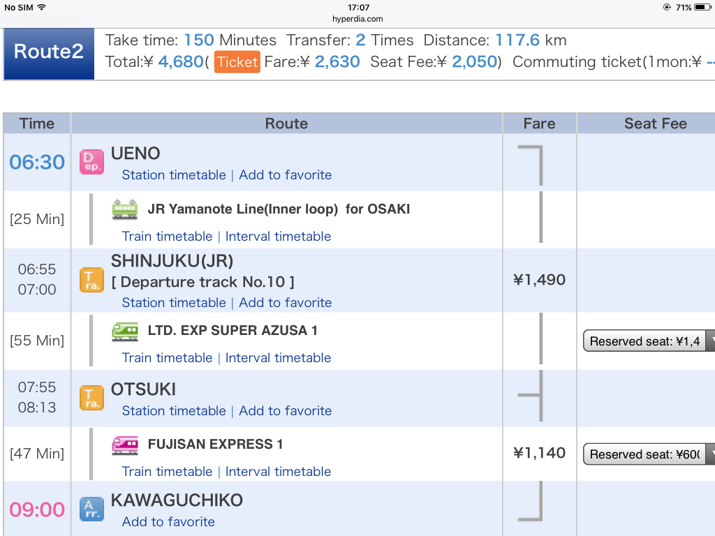 ไปคาวากูชิโกะโดยรถไฟ ขอคำแนะนำด้วยคะ