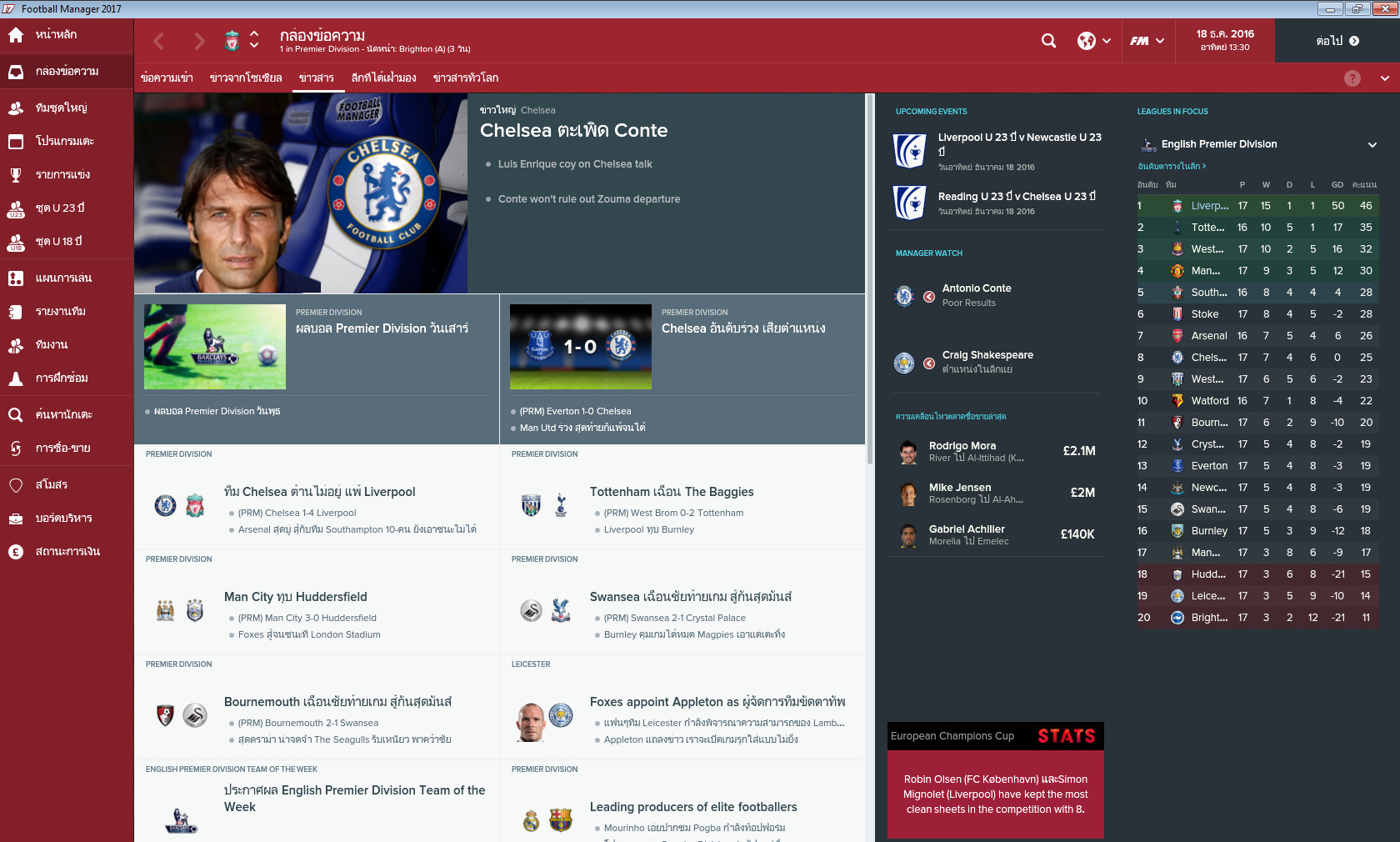 ถึงคอนเต้ จะไม่บิ๊กเนม เท่า มู เป็ป หรือ คล๊อป แต่การทำทีมเชลซี ถึงตอนนี้น่าจะบ่งบอกฝีมือได้อย่างดี คิดว่าแมนยู ตงชื่นชอบเกมส์รุกอันตื่นตาตื่นใจของเชลซี ณ ตอนนี้ ด้วย แถม คอนเต้ มักให้โอกาสดาวรุ่งด้วย