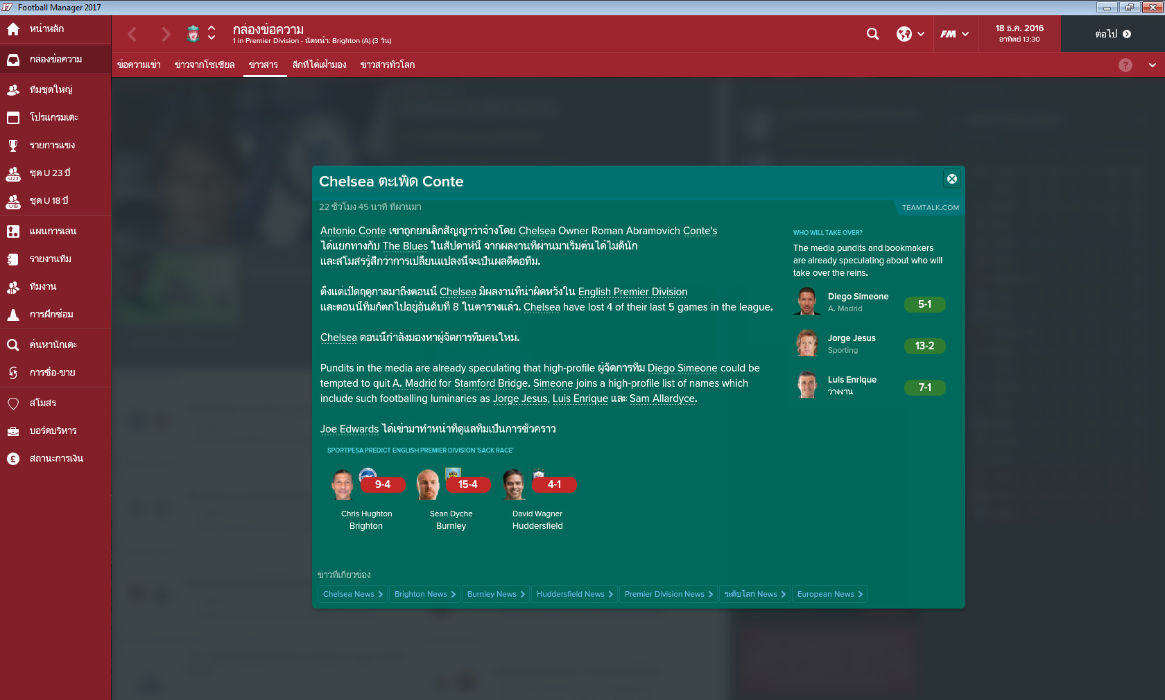 คิดว่าใครจะเข้ามาคุมเชลซีแทน คอนเต้ ครับ