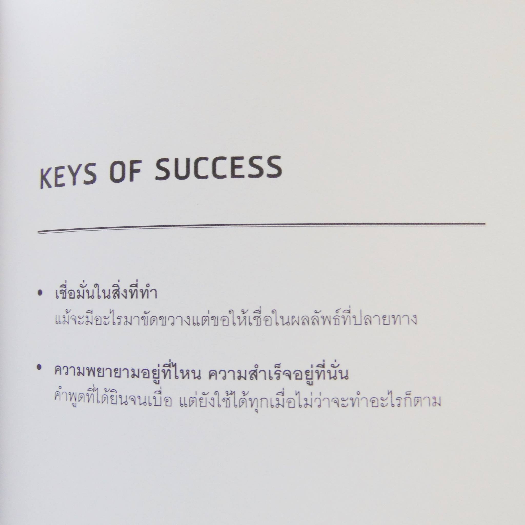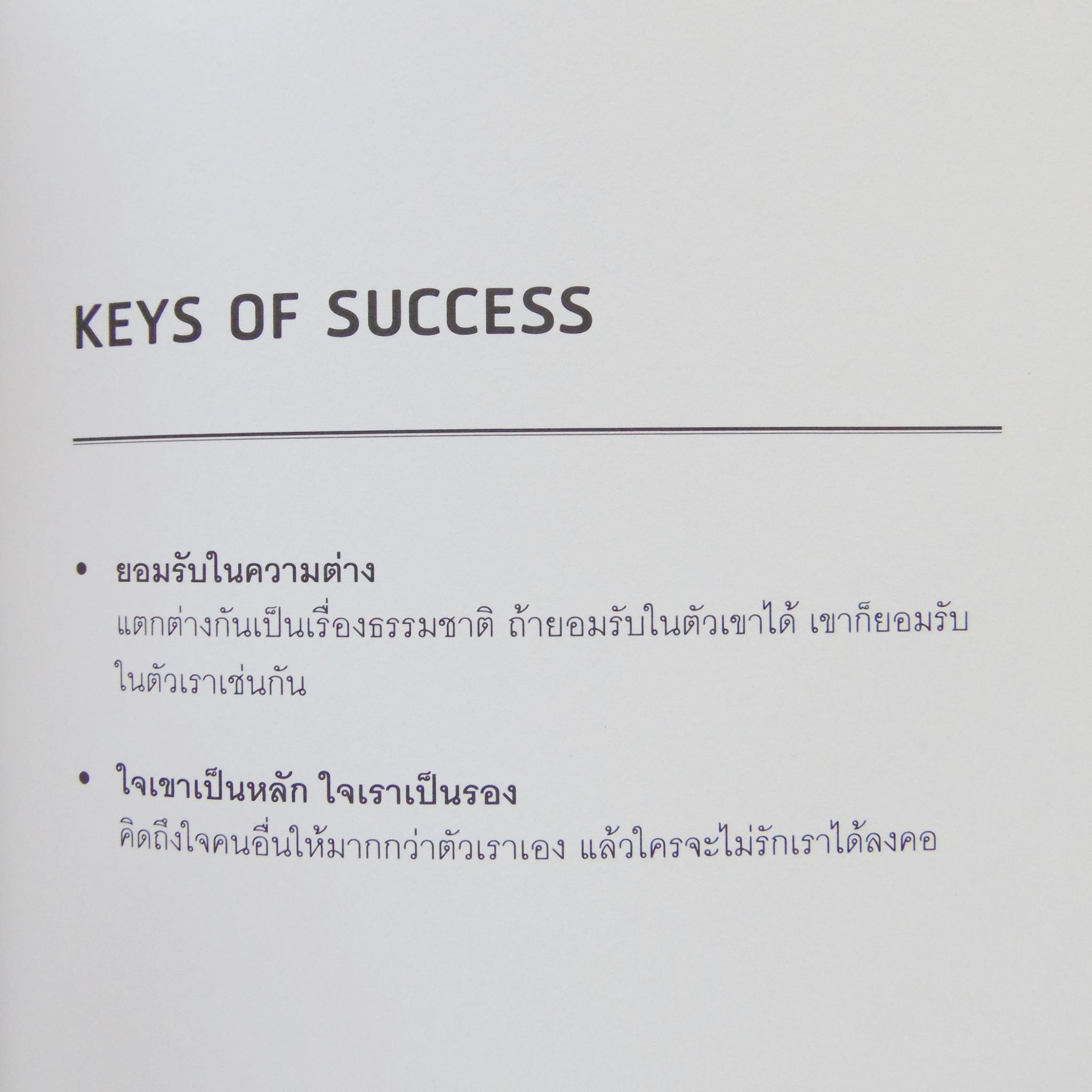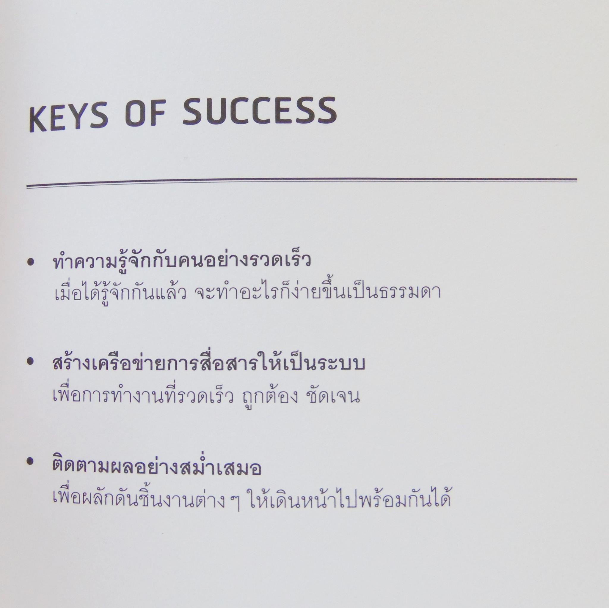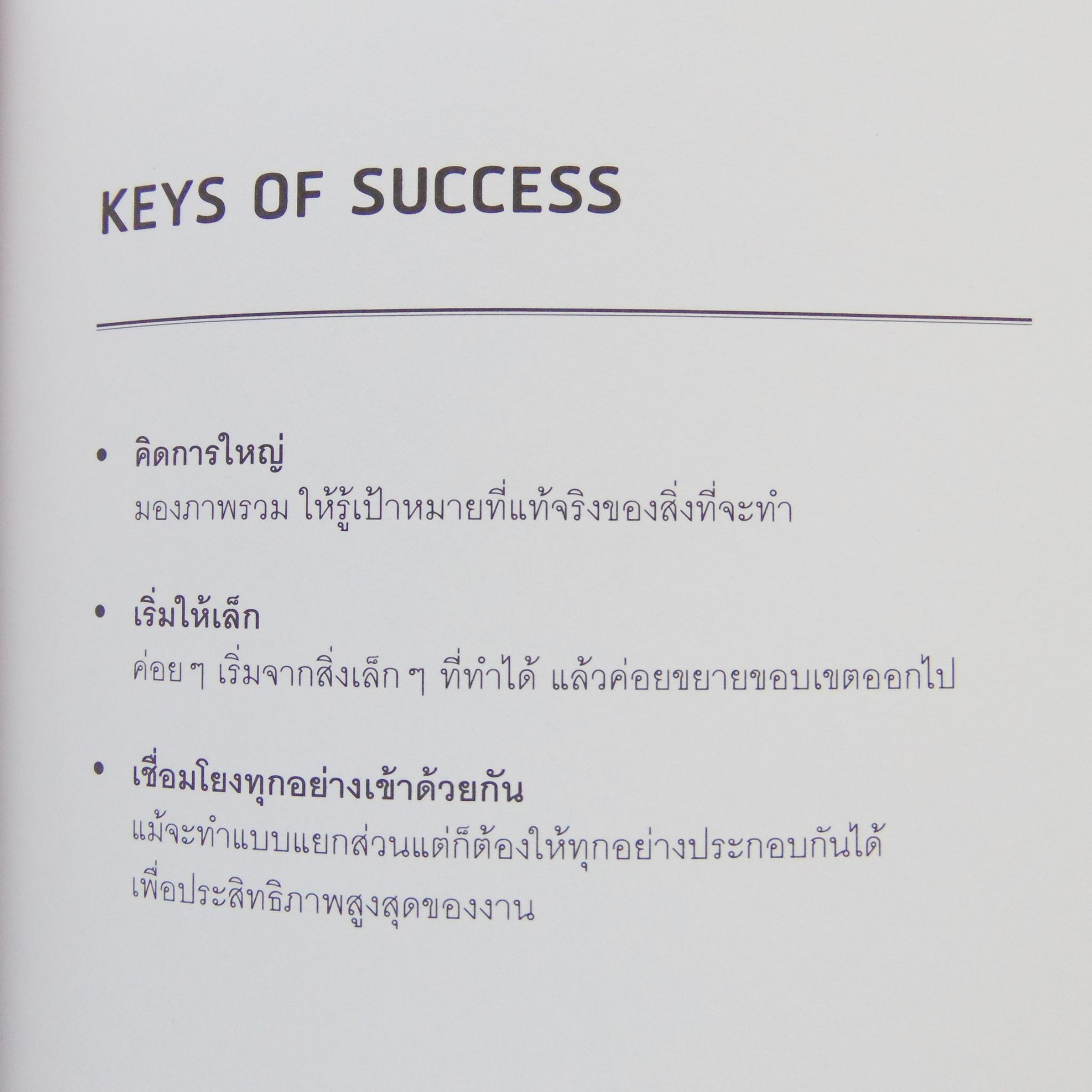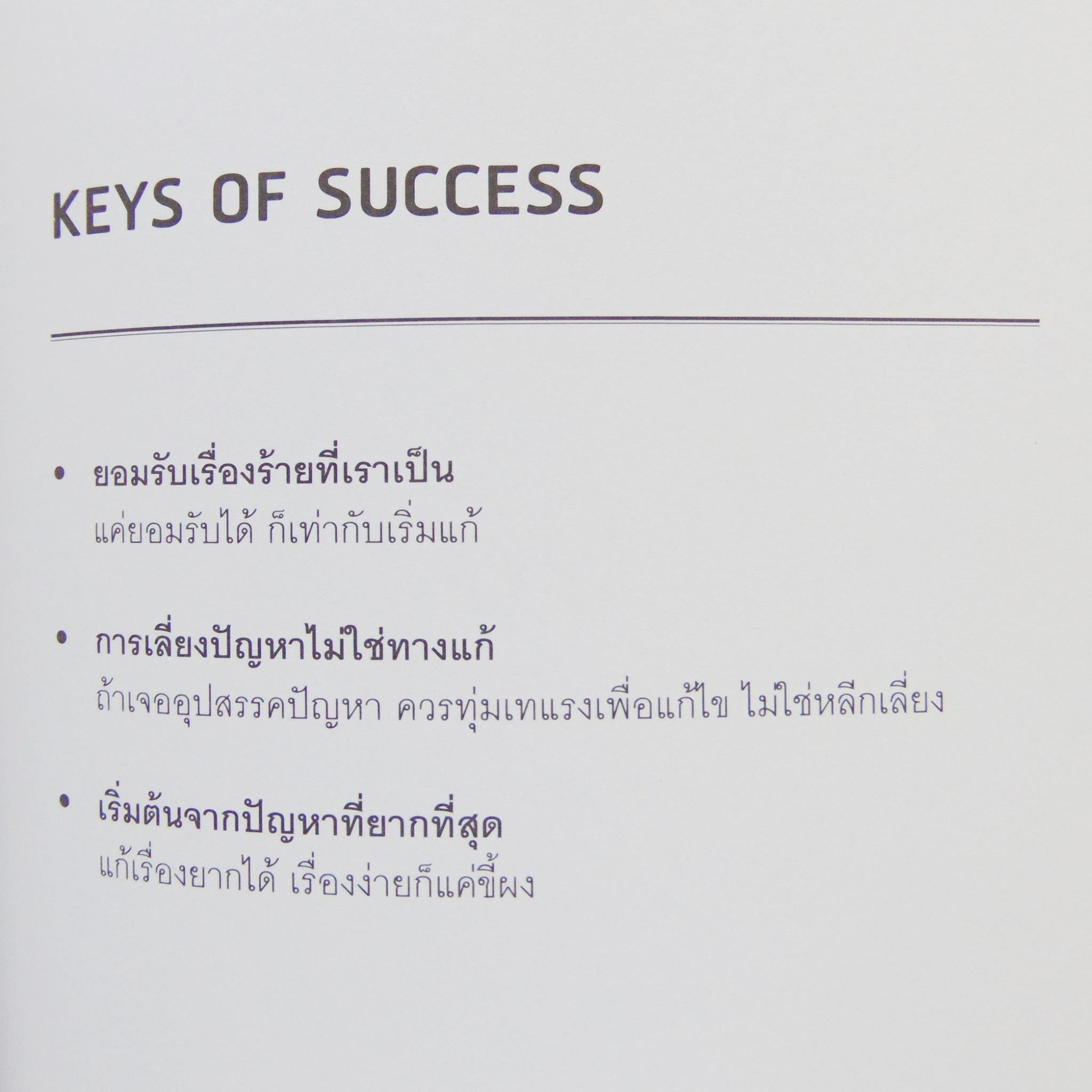 สรุปเรื่องที่พระองค์ทรงใช้ Key of Success ต่างๆเป็นแนวทางผ่านการเล่าเรื่อง ซึ่งเป็นเรื่องของการทรงงานส่วนพระองค์นำมาถ่ายถอดเป็นเรื่องราวโดนย่อ ซึ่งยังคงใจความสำคัญของเนื้อหาตามหนังสือ ออกมาเป้น 9 หลักการ ตามบทแบ่งเป็น 9 บท ได้แก่