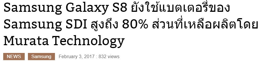 อีกอย่าง Samsung S8 กับ Note 8 ก็ใช้แบตจาก Samsung SDI มากถึง 80% แต่ก็ไม่เห็นมีปัญหาแบบ iPhone 8 เลย?