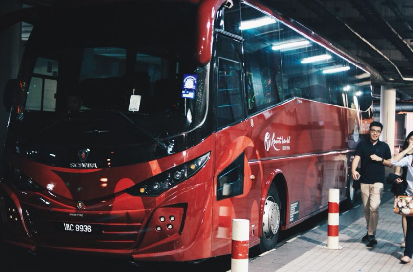 ลงมาที่ Bus Terminal ตามเวลานัด 16.50 น. ที่พนักงานบอก รถบัสจะออกเวลา 17.00 น. ไม่ห่วงอะไร ที่นั่งแบบมีเลขการจองมั่วไม่ได้ เราใช้เวลานานเป็นพิเศษ ประมาณ 2 ชั่วโมง รถติดมากกกกกกกกกก ไปถึง เกนติ้งตอนเกือบทุ่ม ดีตะวันยังไม่ตกดิน ไม่งั้นมองไม่เห็นวิวอะไรแน่นอน โชคยังเข้าข้างเราบ้าง วันนี้พระอาทิตย์จะตกดินตอน 1 ทุ่ม