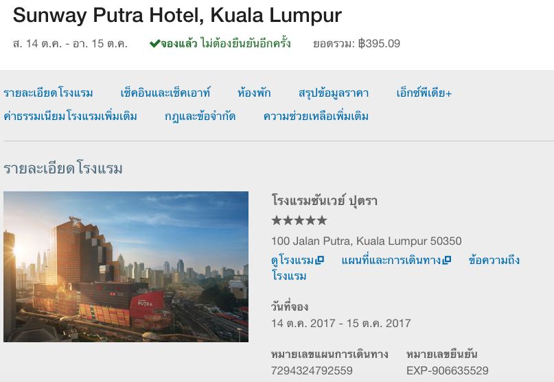 ห้องสาม - จองผ่าน Expedia สำหรับสองคน เรากับแม่ ที่ Sunway Putra Hotel แม่ไม่อยากนอน Regalia Suit เพราะเคยมานอนหลายรอบแล้วห้องนี้เราใช้สิทธิ VIP Access + แต้มสมาชิก Silver + จอง Business Class ผ่าน Expedia ทำให้ได้ที่พักมาคืนละ 400 บาท หารสองคน 165 บาทต่อคน ปกติคืนละ 3000 บาท