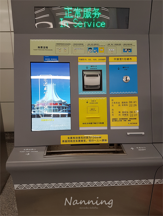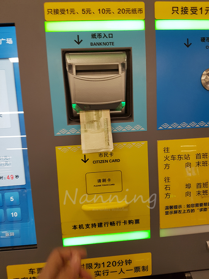 เมื่อเลือกสถานีได้แล้วทำการจ่ายเงิน โดยใส่ธนบัตรในช่องนี้ค่ะ