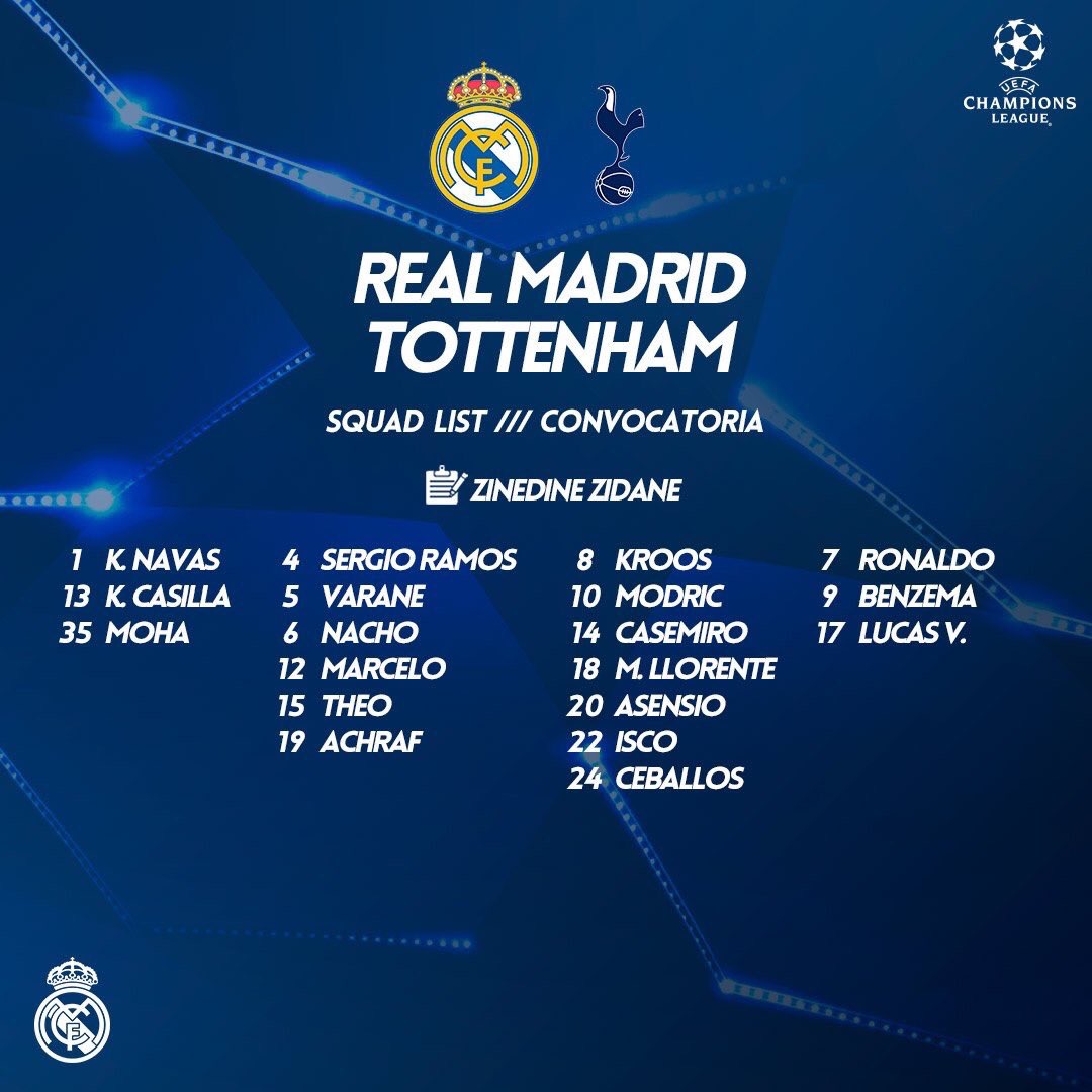 วันนี้ เรอัล มาดริดของเราจะเปิดบ้านดวลกับสเปอร์ ทีมเก่าของเฮียมด และนุ้งเบลในศึกUEFA Champions League 2017-18 รอบแบ่งกลุ่ม นัดที่ 3