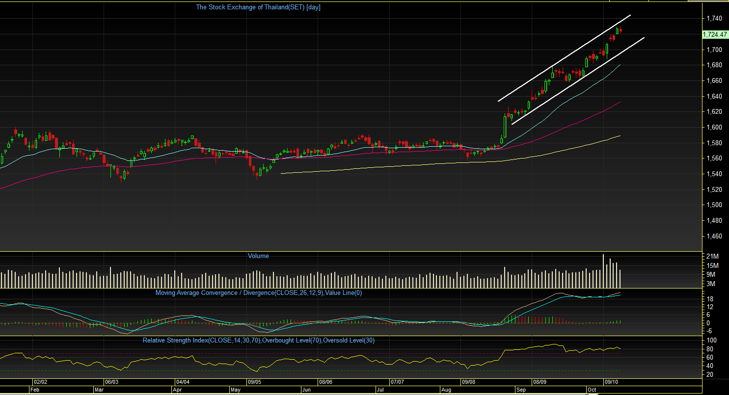 ยังคงเป็น Strong Bullish ตราบใดที่ดัชนียังคงยืนเหนือ EMA25 วัน ก็จะคง Rally ขึ้นไปได้ต่อ จนกว่าจะเห็น Reversal Pattern