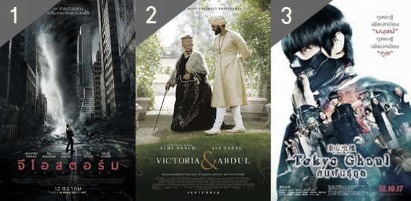 อันดับ 1 : Geostorm ภาพยนตร์แอคชั่นไซไฟ แนวภัยพิบัติสุดตื่นเต้น เมื่อดาวเทียมควบคุมภูมิอากาศของโลกเกิดความเสียหายนำไปสู่ภัยพิบัติขึ้นทั่วโลก แต่โลกยังมีหวังเมื่อวิศวกรหนุ่มได้ขึ้นไปซ่อมแซมดาวเทียมในอวกาศ และเขาก็ต้องตกใจเมื่อสิ่งที่พบคือ แผนการลอบสังหารประธานาธิบดีสหรัฐฯ ที่ซ่อนอยู่เบื้องหลังหายนะครั้งนี้