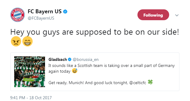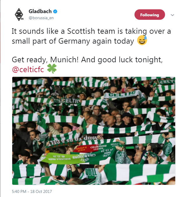 (ยังฝังใจเซลติกที่เขียนชื่อทีมไม่ถูก ลงท้ายด้วยการเขียนตัดบทว่า German team ไม่หายสินะกลัดบัค 5555555)