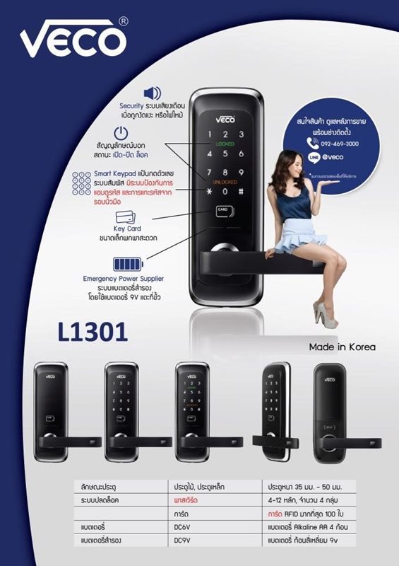 ดิจิตัลล็อคของ VECO ที่ผมเลือกมาติดเป็นรุ่น L1301 ครับ ราคา 9,900 บาท เค้ามีช่างมาติดตั้งที่ให้ที่บ้านฟรีด้วย