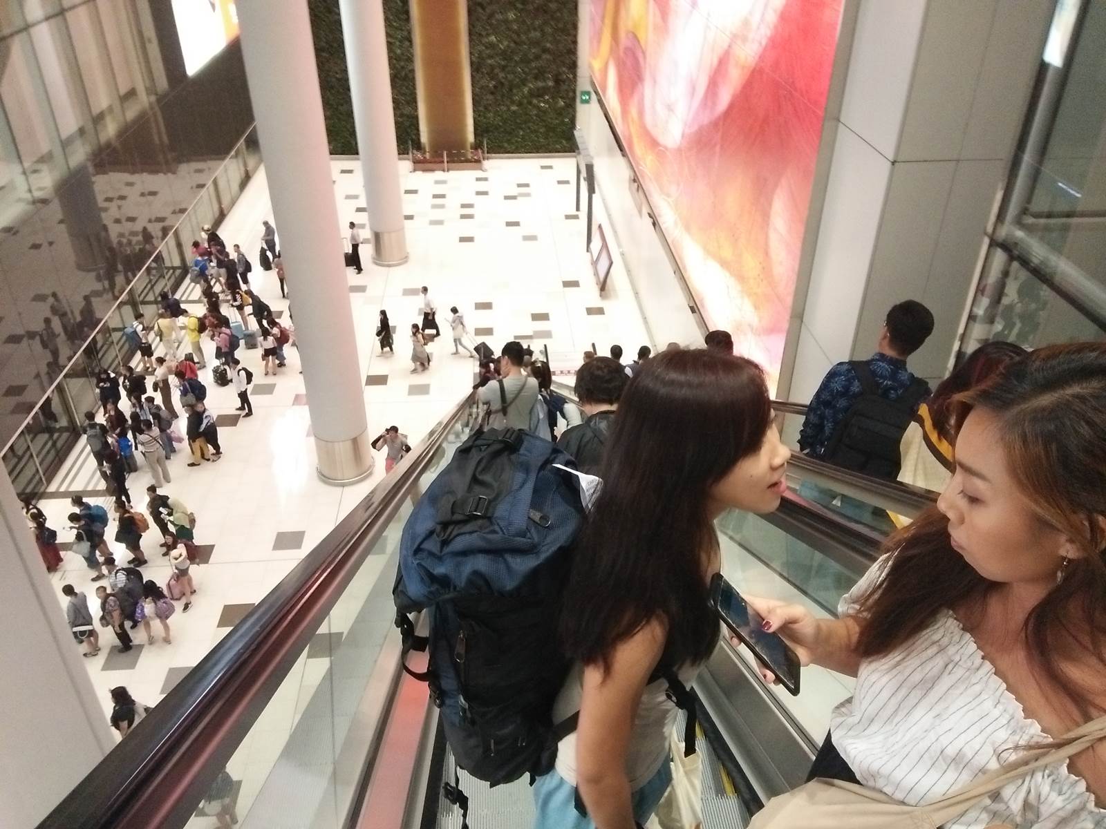 พออกจากเครื่องบินมาแล้ว เดินมาขึ้นรถไฟระหว่าง terminal (ฟรี) เพื่อไป Immigration ซึ่งสถานีรถไฟฟ้าจะอยู่ชั้นใต้ดินของสถาบินนานาชาติฮ่องกง ถ้าไม่รู้ว่าไปทางไหน หลังจากเดินออกจากเครื่องบินแล้วก็เดินตามคนข้างหน้ามาเลย ตรงไหนคนเดินไปเยอะๆนั่นแหละคับใช่เลย ส่วนผมก็เดินตามสาวผมยาวนี่ล่ะมา อิอิ