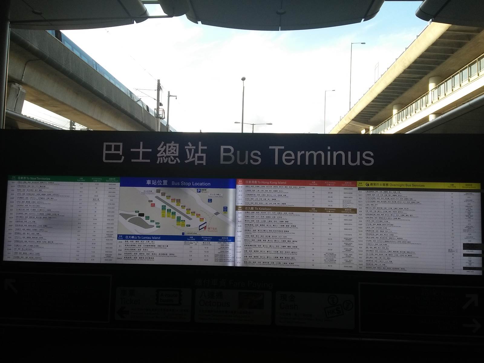 อาคารผู้โดยสารให้เดินไปตามป้าย Bus terminus เพื่อไปรอขึ้นรถบัส สาย S1 เข้าไปในเมืองกัน รถบัสสายนี้จะถึงแค่สถานี Tung Chung ราคาค่าโดยสารถ้าจำไม่ผิด 3.7 HKD นี่แหละ โดยค่าโดยสารถ้าจ่ายเป็นเงินสดเขาจะไม่ทอดเศษนะคับ นี่เป็นอีกสาเหตุหนึ่งที่ต้องจ่ายด้วย Octopus Card