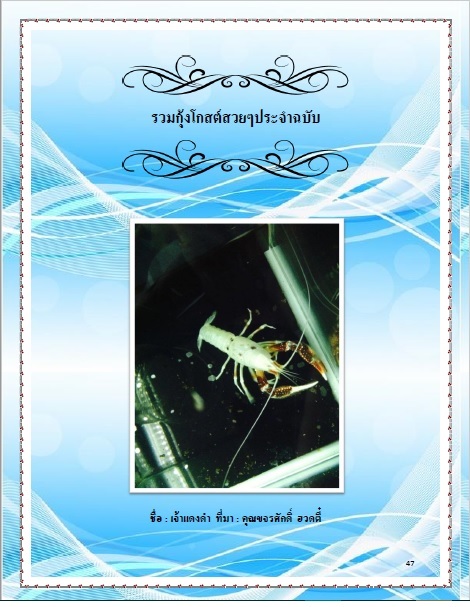 ขออนุญาตนำเรื่องราวที่น่าสนใจเกี่ยวกับ กุ้งอัลเลนี่ และ ภาพกุ้งสวยๆ จากหนังสือ Aqua Fanzine ฉบับ 1 มาให้ดูจ้า