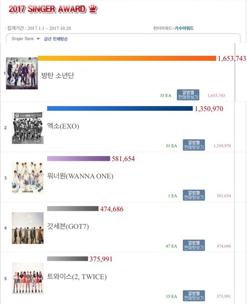[K-POP] HANTEO | 2017 Singer Award (1 มกราคม - 20 ตุลาคม 2017)