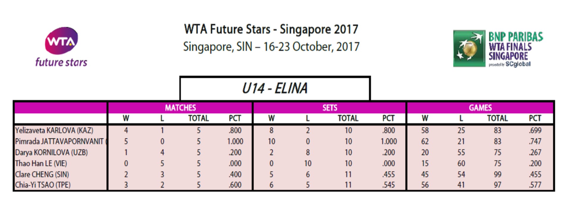 กำลังแข่งอยู่ตอนนี้ รอบชิงชนะเลิศ WTA Future Stars finals ประเภทอายุไม่เกิน 14 ปี