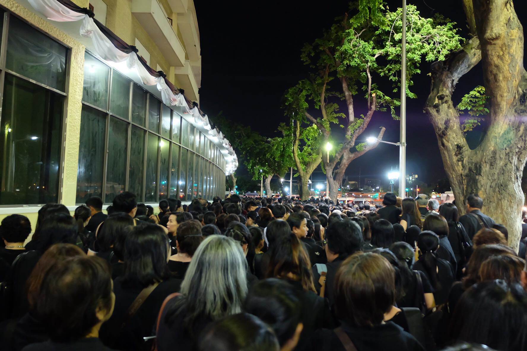 โดยไปนั่งต่อคิวรอที่ข้างโรงแรมรัตนโกสินทร์ตั้งแต่เวลา 03:30 น. ซึ่งประตูจะเปิดเวลา 05:00 น. เมื่อถึงเวลาเปิดจุดคัดกรอง จนเลยเวลาไปมาก แถวขยับครั้งละ 3 ก้าว และรอเป็นเวลานานมาก ซึ่งระหว่างนั้น จะมีกลุ่มจิตอาสาเดินแทรกขอทางมาจากทางด้านหลังเพื่อไปข้างหน้าเป็นระยะ สร้างความไม่พอใจให้กับหลายคนแต่ไม่ใช่ทุกคน ที่ยืนรออยู่ ยิ่งแถวไม่ขยับ ความไม่พอใจยิ่งเพิ่มมากขึ้น