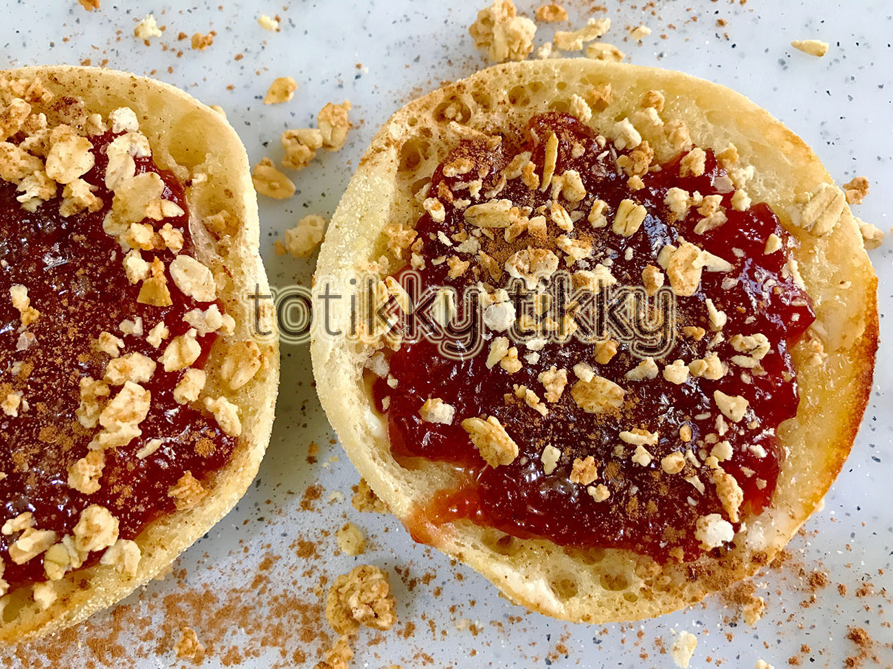 อาหารเช้าอิงลิชมัฟฟินกับสตรอว์เบอร์รี่แยม