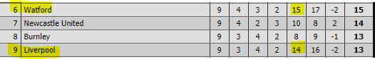 บางทีผมเห็นทั้งข่าวทั้งแฟนบอล เขียนว่า ลิเวอร์พูล "หน้าเวิลด์คลาส หลังเวิลด์แกส" แห่งพรีเมียร์ลีก เลยสงสัยว่าเวิลด์คลาสขนาดไหน สถิติของทีมในการเล่นพรีเมียร์ลีกนะครับ ลงสนาม 9 นัด ทำได้ 14