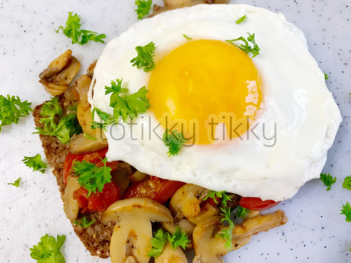 อาหารเช้าขนมปังปิ้งมะเขือเทศไข่ดาว