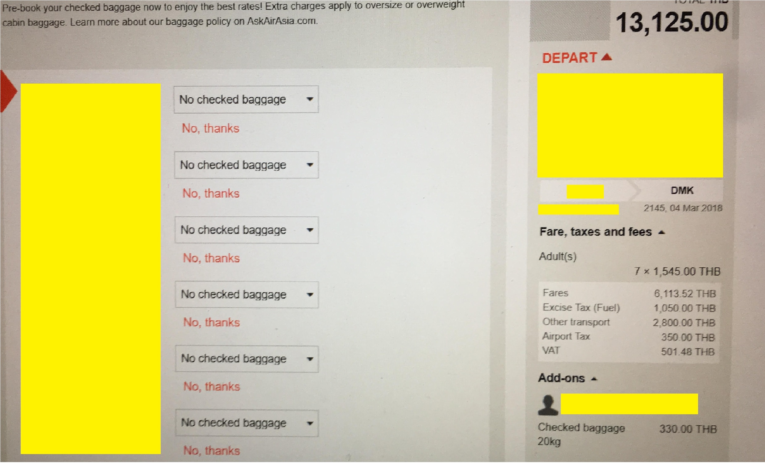 คือจองตั๋วออนไลน์ไปแล้วและจ่ายเงินไปแล้วแต่ตอนนั้นไม่ได้เลือกโหลดกระเป๋า แต่พอจะบินจริงเกิดอยากโหลดกระเป๋าซึ่งอยากซื้อในเว็บของแอร์เอเชีย แต่พอไปแก้ไขสัมภาระแล้วเลือกน้ำหนักที่ต้องการแล้ว จากตอนแรกค่า