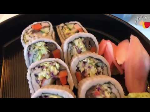 ซูชิเผือก ทางร้านเอาเผือกมาห่อแทนข้าว ข้างในเป็นไส้ผัก เห็ด และไส้กรอกเจ (เดา) แต่โดยรวมอร่อยดีอะ