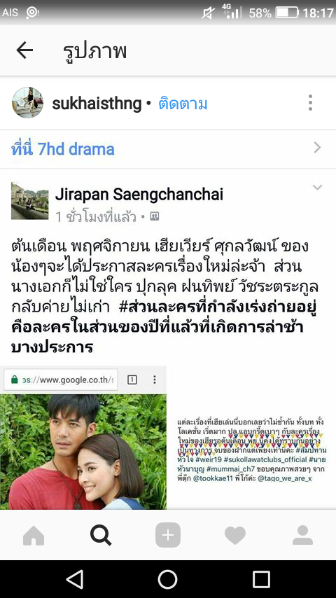 จขกท.ได้ภาพนี้มาจากเพจเฟชบุ๊ค "Dara Daily" จะมีข้อความว่า "ธง ฟันโชะ!! ปุ๊กลุก นางเอก ลง นายฮ้อยทมิฬ คู่ เวียร์?"