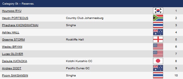 ... โปรเพชร พชร คงวัดใหม่ และโปรภูมิ ศักดิ์แสนศิลป์ 2โปรดาวรุ่งของไทย คว้าสิทธิเข้าเล่นรายการนี้ในฐานะผู้เล่นสำรองในโควต้าของ Asian Tour นับเป็นตั๋วใบสุดท้ายที่ทั้ง2ท่านได้เข้าร่วมชิงชัยกับอีกโปรกอล์ฟระดับโลกอีก 76คน