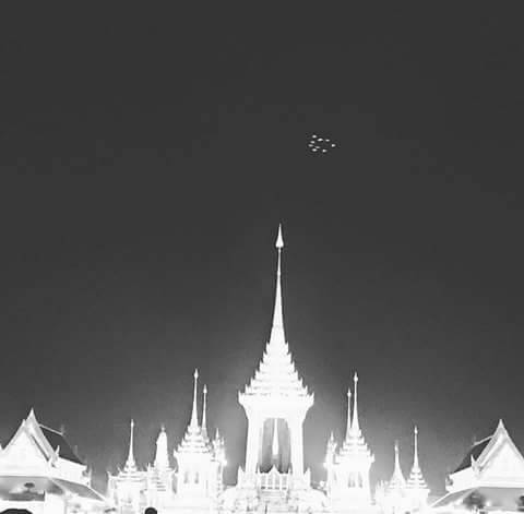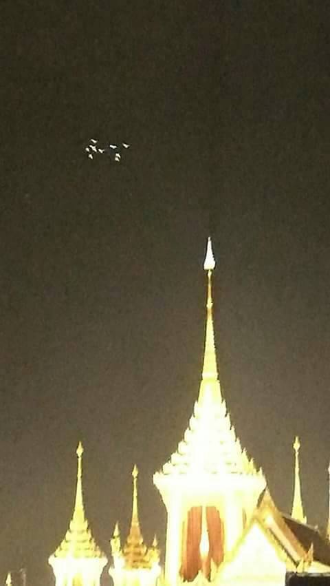 และในเวลาดังกล่าวได้มีฝูงนกสีขาว บินมาที่พระเมรุมาศ จำนวน ๙ ตัว ในความอัศจรรย์คือ เหล่านก บินวนรอบพระเมรุมาศ แล้วหายเข้าไปในหมอกเมฆ ประชาชน ต่างสะอื้น พร้อมกับสาธุ