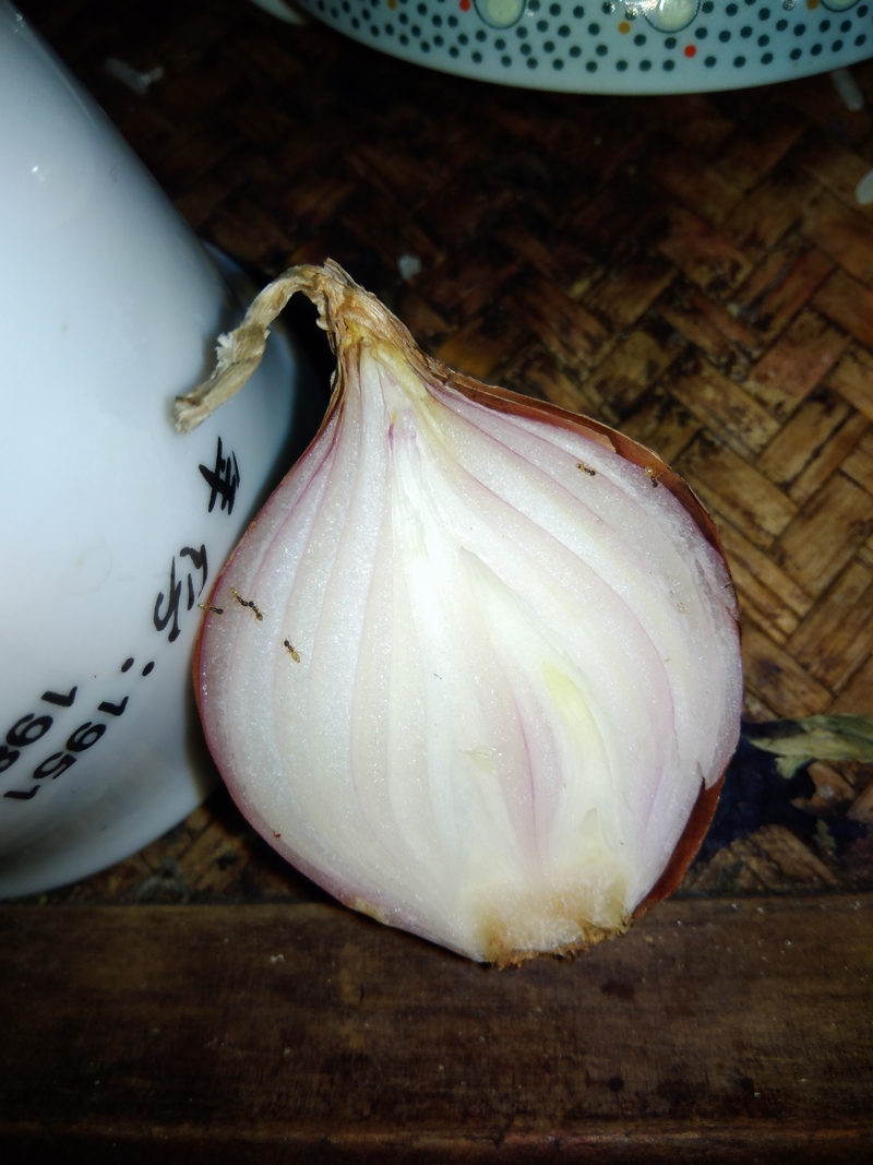 คือสำหรับคนอื่นผมไม่แน่ใจนะ แต่ผมเพิ่งสังเกตุ หั่นหอมแดงไว้เหลือครึ่งนึง ผ่านไปนานพอตัว เดินผ่าน เห็นมดคันกำลังตอมกินอยู่ แปลกใจดี ปกติไม่ค่อยได้เห็นมดตอมอะไรพวกนี้ ปกติก็มีแต่น้ำตาล.....ขนม ของหวานๆ แปลกดีมันกินหอมแดงด้วย = ='' เอ๊ะแล้วทำไมพวกมะเขือเทศ หรือวัตถุดิบอื่นนๆมันถึงไม่กิน เอ้อแปลกดี วอนผู้รู้ อธิบายหน่อยจ้าาาา แชร์ๆความรู้กัน