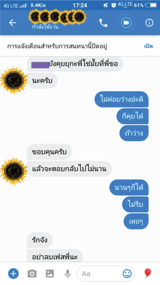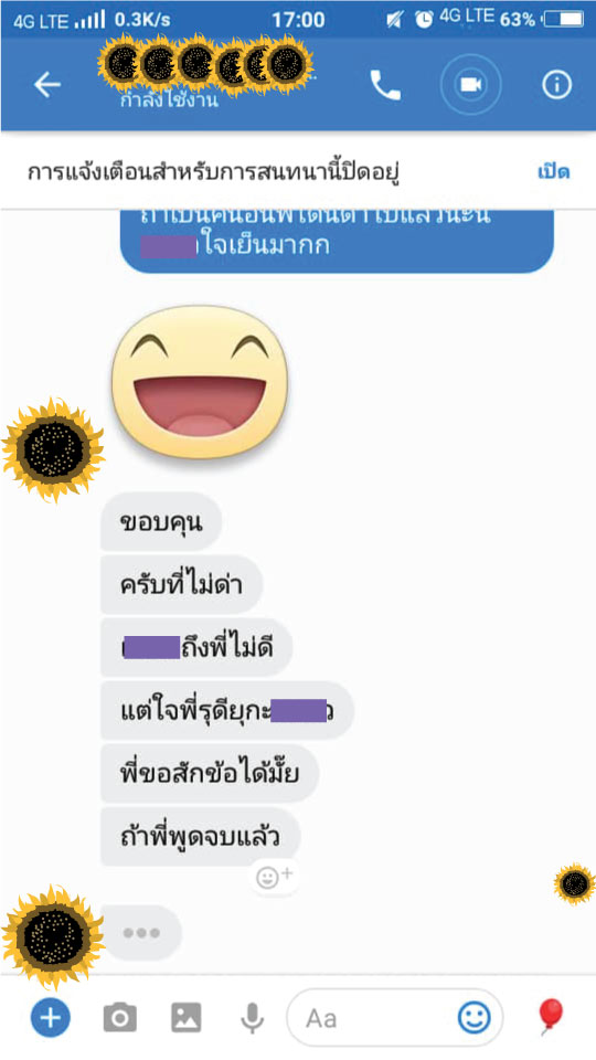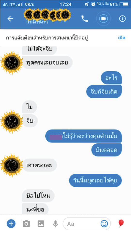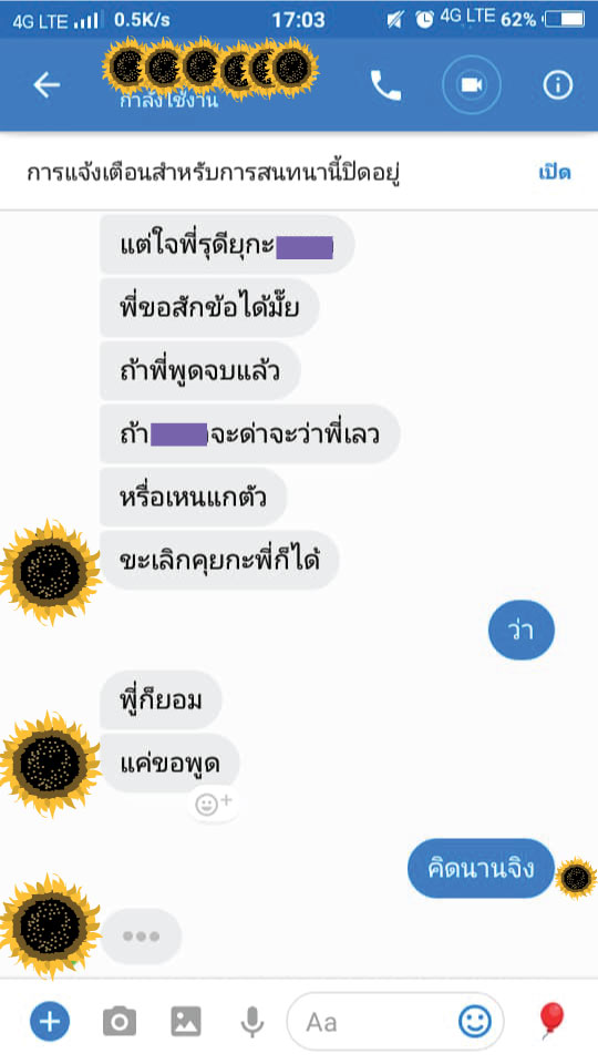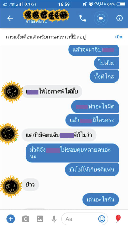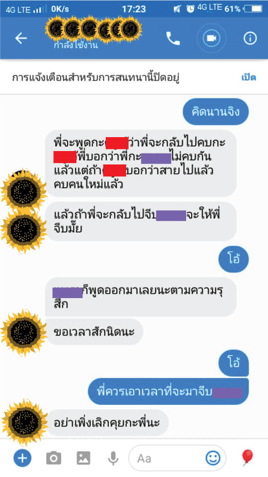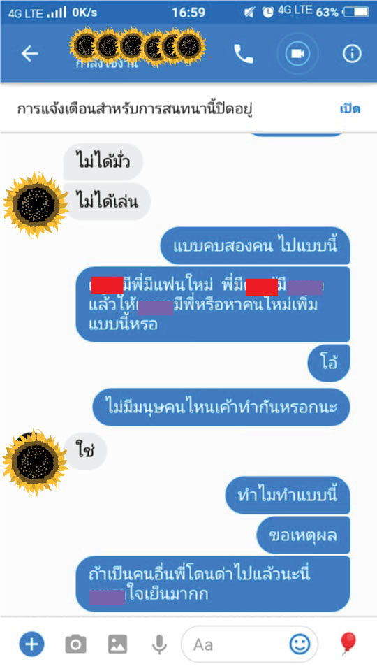 แฟนของสาวหล่อทักเฟสมาร่ายยืดยาว ว่ารักกันมากขอให้เลิกยุ่งเลิกคุย ซึ่งน้องนางนี่ก็ไม่ได้อยากคุยก็บอกว่าไม่ได้คุย