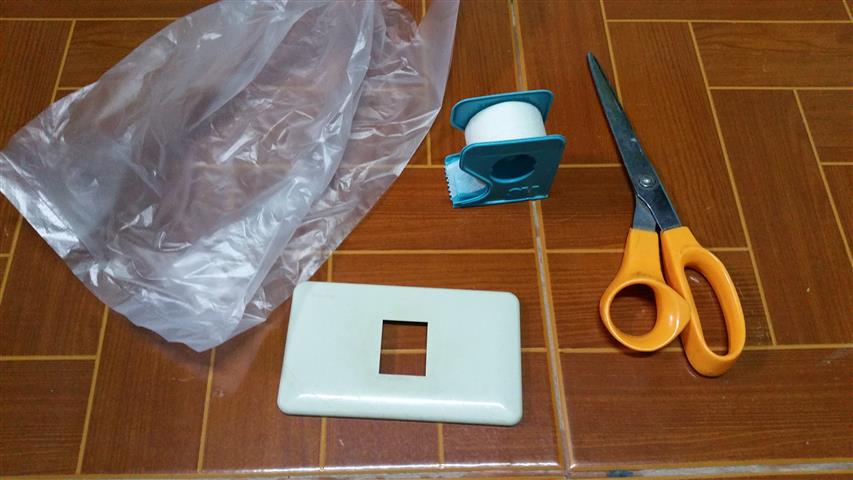 เพึยงแค่เราถอดฝาครอบสวิทช์ออกแล้วเอาถุงพลาสติกมาครอบตามรูป วิธีนี้ผมใช้มานานแล้ว พอดีถุงพลาสติกที่ทำไว้มันเริ่มสกปรกแล้ว