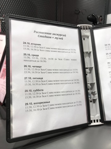 ค่าตั๋วทัวร์ สนาม คนละ 700 RUB ค่ะ ใช้เวลาทัวร์ประมาณ 3 ชั่วโมง รอบตั๋วจะเป็นประมาณนี้ค่ะ เค้าจะมีตารางเป็นวันๆ