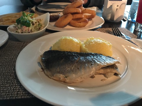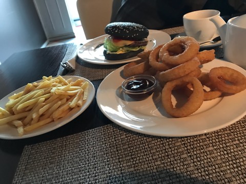 เราสั่ง lunch set จะมีน้ำผลไม้ ขนมปัง ซุป สลัด อาหารหลัก ราคา 330 RUB ส่วนคุณสา สั่ง gladiator burger 300 RUB และสั่ง french fries กับ onion ring มาทานเล่นกันสองคน จุกเลยค่ะ รวมๆแล้วอาหารอร่อย ราคาไม่แพงและเป็นที่นั่งรอทัวร์สนามได้อย่างดีเลยค่ะ