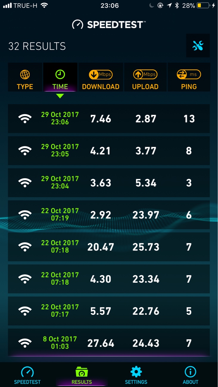 ตอนนี้ใช้ของค่าย True แล้วเน็ตวิ่งไม่ดีจากเดิมที่วิ่งได้ดีมากๆ อยู่ๆดรอปลง (เหลือ 3G บ้าง เป็น 4G บ้าง) พอเช็คสปีดเน็ต ดาว์โหลด 150 Kbps อัพโหลดโหลดพอได้ (ผมใช้