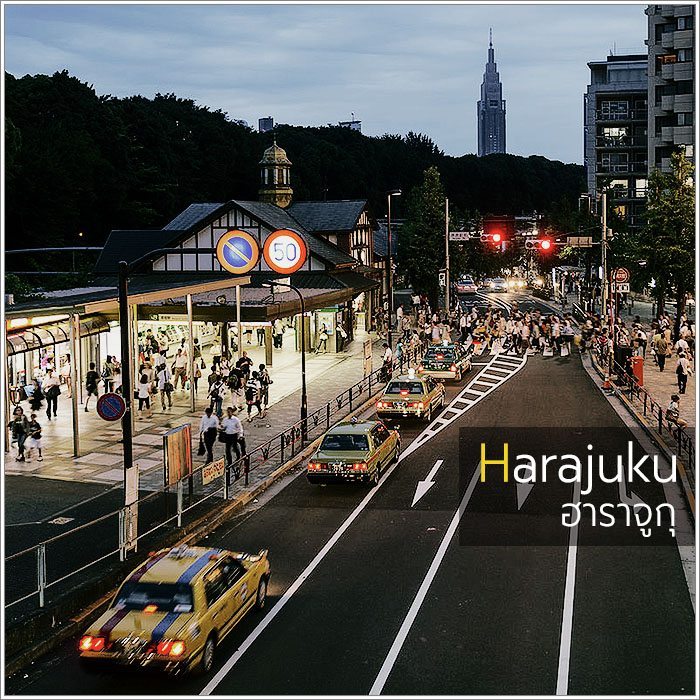 ย่านฮาราจูกุคือศูนย์กลางของวัยรุ่น ญี่ปุ่น ที่มีความเป็นตัวของตัวเอง ทุกคนแต่งตัวมาเที่ยว อย่างสุดฤทธิ์ มีร้านค้าที่เป็นแฟชั่นญี่ปุ่น และตรงข้ามที่แห่งนี้ คือ สวนที่เงียบสงบและศาลเจ้าขนาดใหญ่ ที่แห่งนี้ มีศาลเจ้า Meiji Jingu เป็นศาลเจ้าที่เก่าแก่ สร้างขึ้นเพื่อระลึกถึงจักรพรรดิเป็นที่สงบมีอากาศดี ศาลเจ้าซินโด เป็นไม้ทั้งหลัง สร้างอย่างวิจิตรงดงาม เป็นที่นิยมไว้จัดงานแต่งงาน ตามประเพณีญี่ปุ่น และที่นี่มีสะพาน Jingu Bashi ที่เป็นสะพานโบราณอยู่หน้าศาลเจ้า ในวันอาทิตย์จะมีวัยรุ่นมาแสดงออกในลักษณะต่างๆคือแต่งกายคอสเพลย์จัดๆ การแสดงดนตรีสด จากวงอินดี้แสดงเป็นประจำ เป็นที่รวมของวัยรุ่นเลยละ