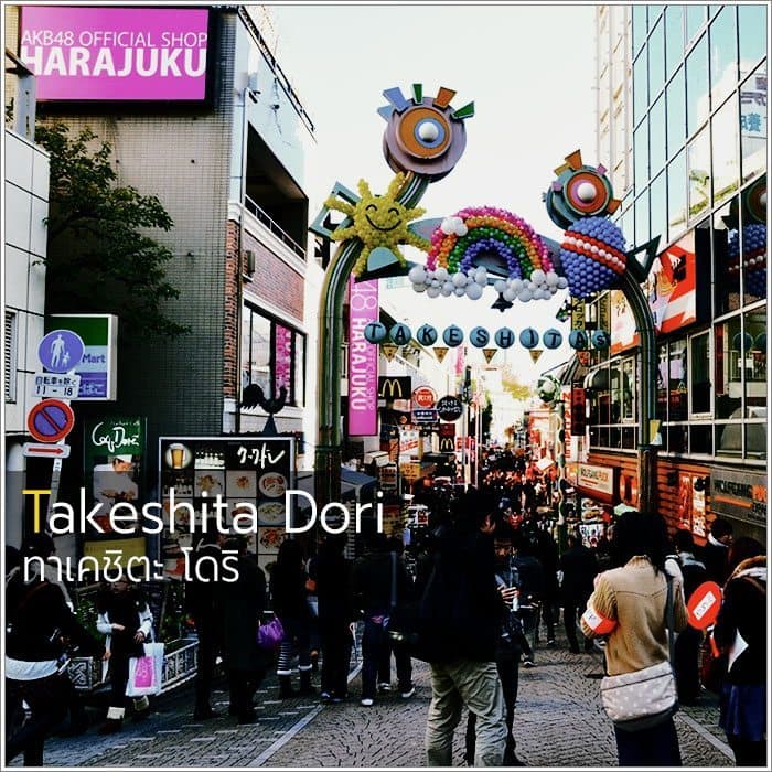 มาดูย่าน Takeshita Dori เป็นย่านที่มีวัยรุ่นมาเที่ยวซื้อของ เป็นหัวใจของ ฮาราจูกุ มีแฟชั่นหลากหลายสไตล์ และยังมีร้านโดยเฉพาะร้านเครปชื่อดังเป็น 10 ร้าน มีหลายหน้าตาให้เลือกตามใจชอบคะ ที่นี่ยังมาร้านเทมปุระที่มีเฟรนไชน์สาขาทั่วประเทศ และยังมีปลา ปลาหมึก ใส่รวมกันมาอร่อยมากมีเส้นอุด้งด้วย มีน้ำซุปมิโสะ เวลาทานเข้ากับเทมปุระ และมีครัวซองค์อร่อยมากที่ ร้านใกล้สถานีชิบุยะ คือที่ร้านขนมปัง Jean Francois อยู่ติดกับมิโดริคะ และมีร้านขนมCROQUANT CHOU เป็นขนมที่เป็นครีมแบบชูครีม ร้านชื่อตามขนมเลยคะ ด้านนอกกรอบด้านในมีน้ำตาลกับถั่วอัลมอนด์แล้ว ทำจากนมฮอกไกโด เพิ่มความอร่อย ร้านที่นี่ดังเป็นพลุแตกเลยละ มีไอศรีมด้วย เขาจัดร้านขายขนมน่ารักมุ้งมิ้งมากๆ คือขนมสายไหมต่อแถวยาวเหยียดเลยละ สายไหมเหมือนไทยแต่เป็นรูปหัวใจ คือร้าน TOTTI CANDY FACTORY มีร้านฮอตดอกไส้ Lobster ดังที่สุดในอเมริกา มีกุ้ง Lobsters รสชาติเหมือนที่อเมริกาอร่อยมากๆ ชื่อร้าน LUKE”S LOBSTER และร้าน เฟรนซ์ฟราย ใช้มันฝรั่งนำเข้าจากประเทศเบลเยี่ยม หั่นเป็นชิ้นหนาเล็กน้อย มีความกรุบกรอบเวลาเคี้ยวคะ ขายที่ ร้าน POMMEKE ค่ะมาเที่ยวมีโอกาสลองแวะชิมแต่ไม่รู้ว่าคิวยาวหรือเปล่านะคะ