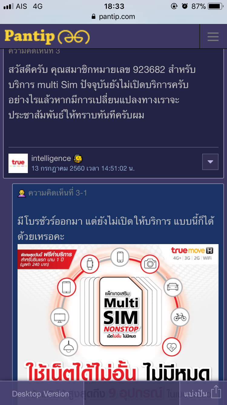 ตกลงตอนนี้ True มีบริการ multisim มั้ยคะ [ตค 2560]