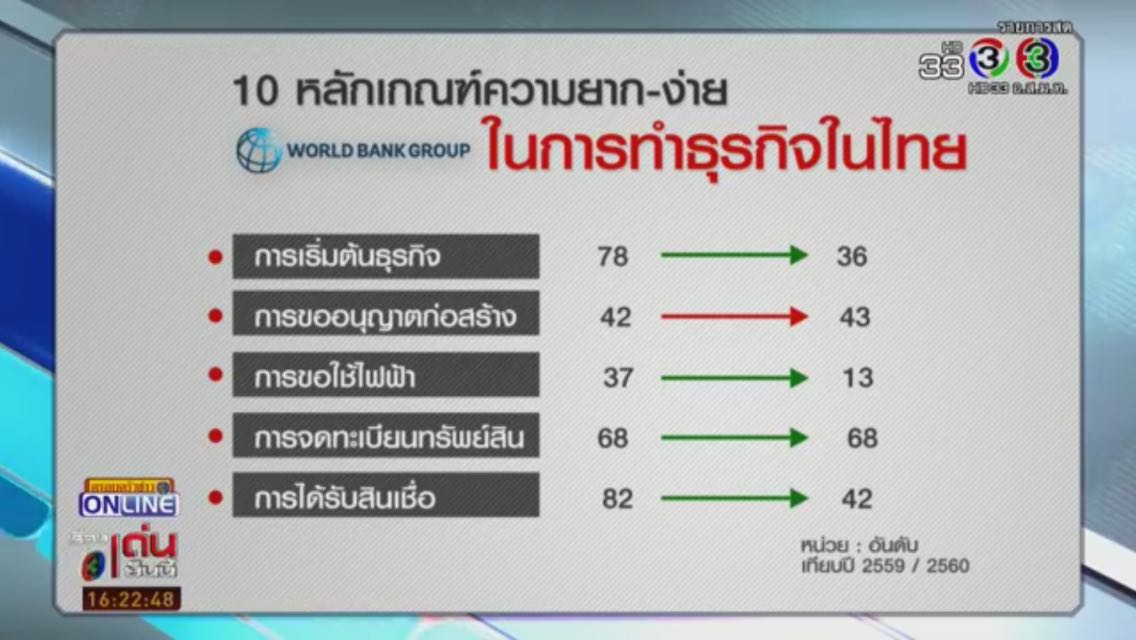 เวิลด์แบงค์ยกนิ้ว"ไทยปี 2017"ปรับปรุงบรรยากาศธุรกิจได้ดี ติดอับดับ 10 ประเทศที่มีความคืบหน้ามากที่สุด