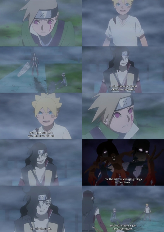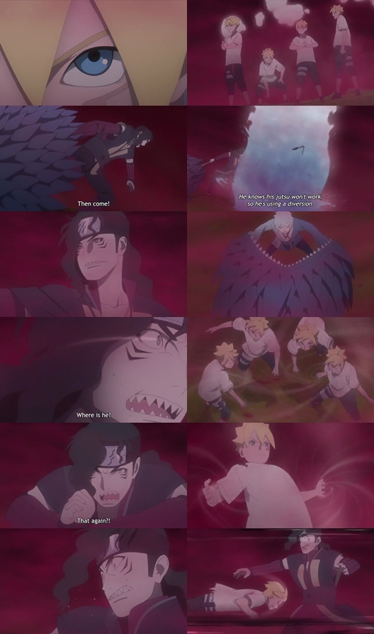 โบรูโตะพยายามจะใช้คาถา talk no jutsu กับคางุระที่โดนชิสุมะพูดกล่อม