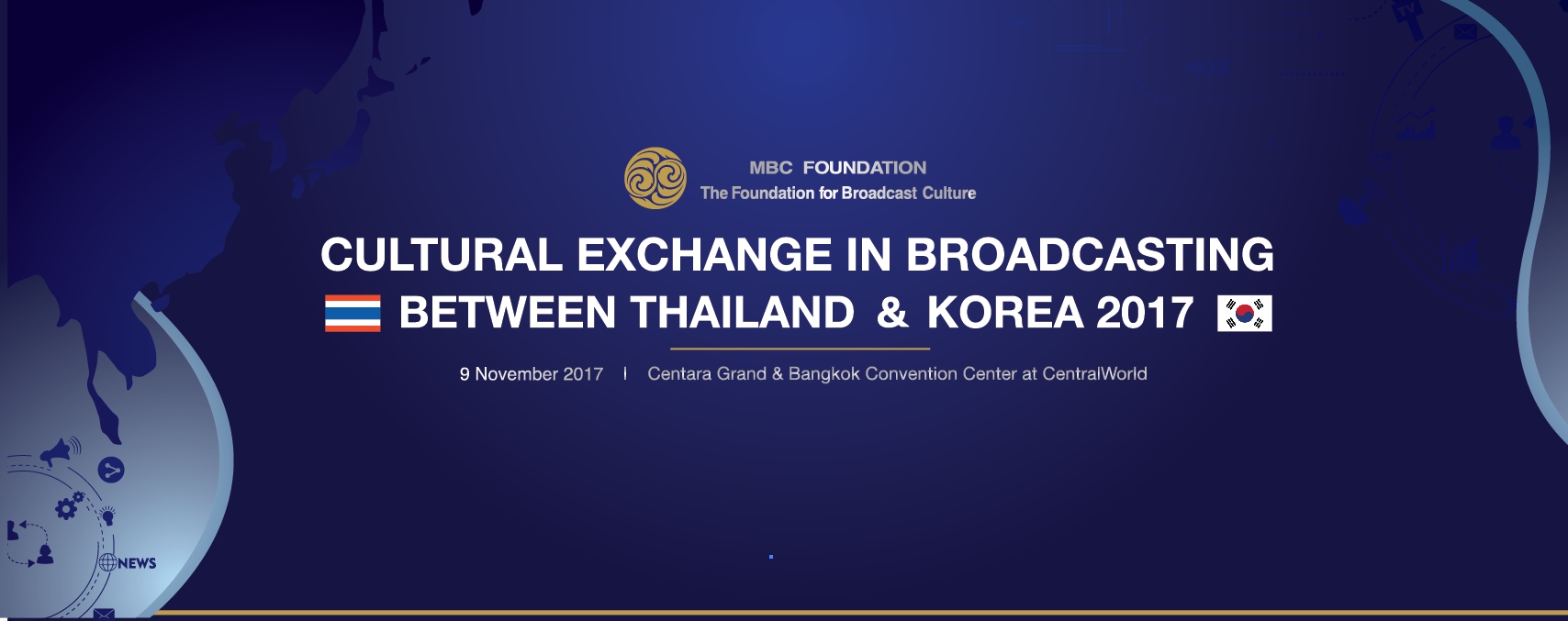 “2017 Seminar on Broadcasting Exchange between Thailand and Korea” โดยมีวัตถุประสงค์เพื่อยกระดับคุณภาพการออกอากาศ และการแลกเปลี่ยนวัฒนธรรมการออกอากาศวิทยุโทรทัศน์ในภูมิภาคเอเชียตะวันออกเฉียงใต้ ซึ่งในปัจจุบันเทคโนโลยีดิจิตอล และอินเตอร์เนทได้เติบโตขึ้นอย่างรวดเร็ว และส่งผลกระทบต่อสถานะของการออกอากาศภาคพื้นดินของสถานีโทรทัศน์ มูลนิธิ FBC เป็นผู้ถือหุ้นรายใหญ่ของ Munhwa Broadcasting Corporation หรือสถานีโทรทัศน์ MBC ก่อตั้งขึ้นกำกับดูแลการทำงานของสถานีโทรทัศน์ MBC ตลอดจน พัฒนาวัฒนธรรมการออกอากาศในประเทศเกาหลี สนับสนุนด้านการเมือง และวัฒนธรรมในฐานะสื่อสาธารณะ โดยทางมูลนิธิได้จัดการสัมมนาครั้งแรกขึ้นในปี 2555 ที่ประเทศเวียดนาม ซึ่งประสบผลสำเร็จเป็นอย่างมาก จนทำให้เกิดการสัมมนาขึ้นทุกๆ ปีในประเทศต่างๆ ไม่ว่าจะเป็น ประเทศพม่า ,กัมพูชา , อินโดนีเซีย , และเวียดนาม ตามลำดับ และในปีนี้มูลนิธิได้เป็นเจ้าภาพจัดการสัมมนาครั้งที่ 6 ขึ้นในประเทศไทย เนื่องจากประเทศไทยเป็นอีกประเทศหนึ่งที่ประสบความสำเร็จในการแลกเปลี่ยนรายการโทรทัศน์จากประเทศเกาหลีใต้ และได้รับความสนใจจากผู้ชมเป็นอย่างมาก นอกจากนี้การจัดสัมมนาครั้งนี้ยังเป็นโอกาสอันดีในการแลกเปลี่ยนข้อมูล ทั้งในระดับภาครัฐและเอกชนระหว่างประเทศไทยและประเทศเกาหลีใต้เพื่อพัฒนากิจการวิทยุโทรทัศน์ของทั้งสองประเทศให้พัฒนาและเติบโตมากยิ่งขึ้น ภายในงานพบกับการสัมมนาในหัวข้อ