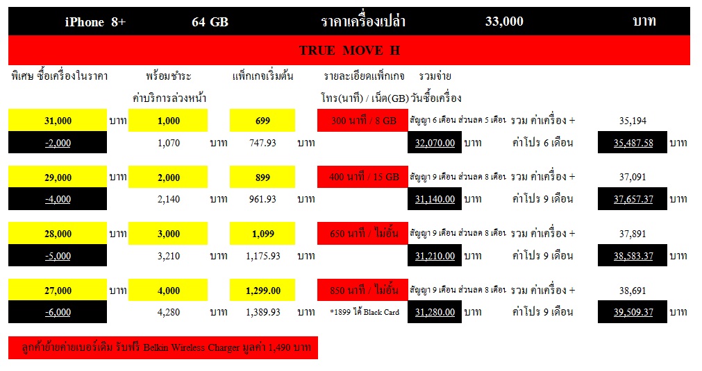 เปรียบเทียบราคา iPhone 8+ 64 GB พ่วงโปรโมชั่น จาก 3 ค่าย Ais , Dtac , True ณ 3 ธ.ค.60