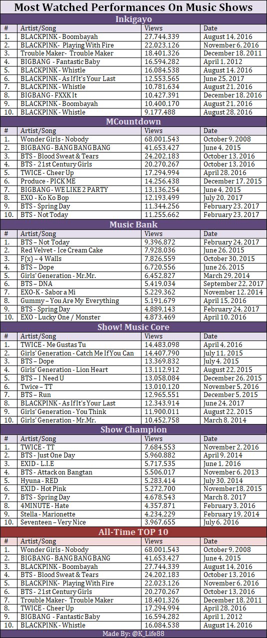 Most Watched Performances On Music Shows