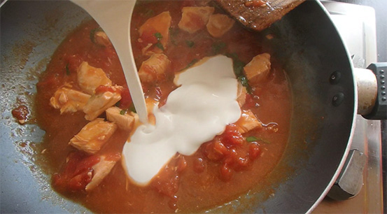 ใส่วิปปิ้งครีม ผัดให้เข้ากันก็จะได้pink sauce สีชมพูแสนอร่อย