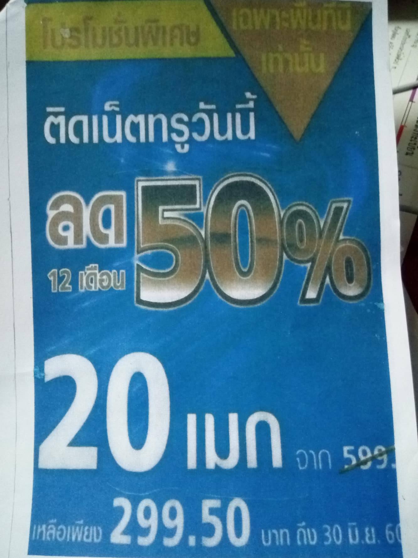 เน็ตบ้านทรู 20 เม็ก เดือนละ 299.50 บาท