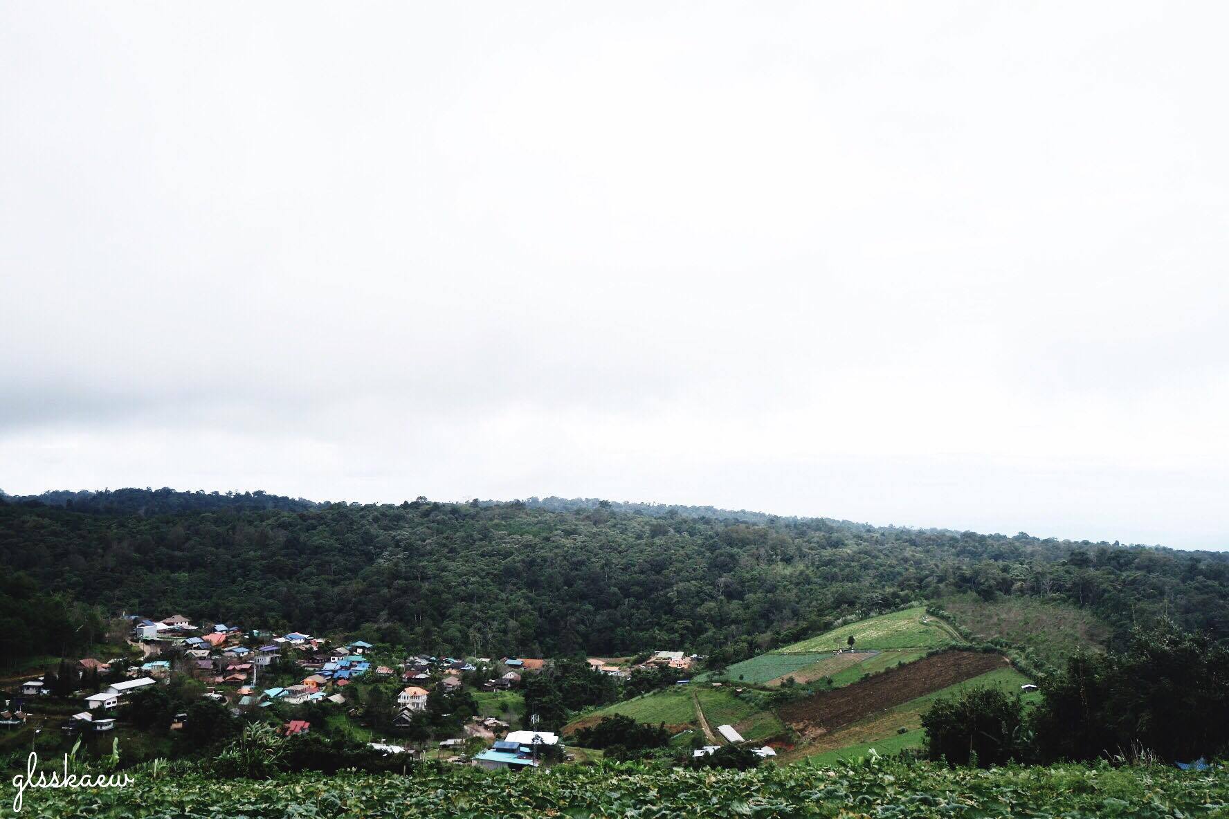 เดินไปเรื่อยๆจนและแล้วก็ได้ทำการโบกรถคันแรก เพื่อจะขึ้นไปยังบนเขา เกิดมีฟิลลิ่งอยากชมวิวหมู่บ้านจากมุมสูง555555