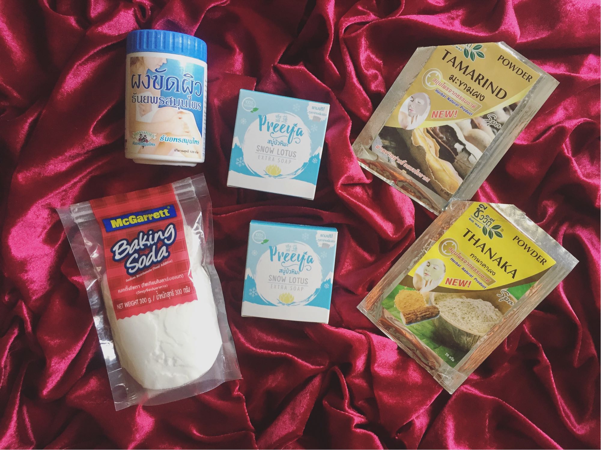 สวัสดีค่ะสมาชิกชาวพันทิปที่น่ารักทุกๆท่าน ตอนแรกก็คิดอยู่ว่าจะลงพันทิปดีมั้ย แต่คิดไปคิดมาก็อยากบอกต่อสิ่งดีๆ จนตัดสินใจตั้งกระทู้นี้ขึ้นมา จากกระทู้ก่อนๆที่เราไปเที่ยวทะเลมาค่ะ คือเกาะหลีเป๊ะนั่นเอง ตอนเที่ยวก็จัดเต็มกับวิวสวยๆของทะเล บำรุงผิวบ้าง ลืมบ้าง จนกลับมาจากทะเลจึงพบว่า สีผิวของอิฉันเปลี่ยนเฉดแล้วจ้า จากผิวขาวเหลือง กลายเป็นดำกร้าน รับไม่ได้ที่สุดด หลังจากนั้นเราก็พยายามหาวิธีกู้ผิว ซึ่งจริงๆไม่ได้หวังให้ขาวขึ้นกว่าแต่ก่อน แค่ขอผิวสีเดิมกลับมา ก็เริ่มหาครีมบำรุง กันแดด ไวท์เทนนิ่ง กลูต้า ครีมผิวขาว สูตรพอกผิวขาว บลาๆ เท่าที่อิฉันจะสรรหาวิถีทางได้ ก็ยังพบว่าผิวยังหยาบกร้านอยู่ จะเรียกว่าไหม้ก็ไม่ใช่ แต่ก่อนไปทะเลผิวจะไม่สม่ำเสมอกัน ใต้ร่มผ้า กับนอกร่มผ้าจะคนละสี แต่พอไปทะเลกลับมาพบว่าสีผิวสม่ำเสมอทั่วตัว คือดำทั่วตัวค่ะ 😭 มัวแต่หาตัวบำรุงอื่นๆ ลืมไปว่าเราต้องบำรุงจากการอาบด้วย เพราะก็เป็นการดูแลผิวที่สำคัญเหมือนกัน เลยลองพยายามหาวิธี ซึ่งพบว่ามีวิธีที่ง่าย และประหยัดก็คือการสครับและขัดผิวนั่นเอง นี่คือหน้าตาส่วนผสมของสครับและสบู่ที่เราเลือกมาเป็นผู้เข้ารอบในการปรนนิบัติผิวของเราในรอบนี้เจ้าค่ะ